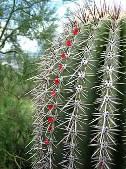 - ^ a b English, Nathan B; Dettman, David L; Sandquist, Darren R; Williams, David G (2007). "Past climate changes and ecophysiological responses recorded in the isotope ratios of saguaro cactus spines". Oecologia. 154 (2): 247–258. Bibcode:2007Oecol.154..247E. doi:10.1007/s00442-007-0832-x. PMID 17724618. S2CID 282478.