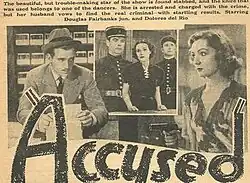Accused is a 1936 British mystery film directed by Thornton Freeland and starring Douglas Fairbanks, Jr., Dolores del Río and Florence Desmond. It was made at Isleworth Studios by the independent Criterion Films, which Fairbanks was a co-owner of.[1] The film's sets were designed by Edward Carrick.