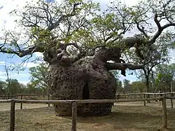 Another hollow boab near Wyndham, Western Australia was also used as a prison tree. The Hillgrove Lockup or Wyndham Prison Tree is on the King River Road out of Wyndham near the Moochalabra Dam.[21][22][23][24] There is also a boab tree located within the Wyndham Caravan Park that is billed as "the biggest boab in captivity".[25]