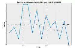 Chart of yearly table positions for Adelaide Strikers in BBL