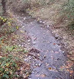 Adobe Creek drains an area of about 10 square miles (26 km2).[1] Its headwaters lie in Lafferty Ranch, a 270-acre (1.1 km2) parcel of land owned by the City of Petaluma since 1995. Lafferty Ranch has been proposed for a wilderness park, but is not accessible to the public.[4] Petaluma Reservoir (which formerly provided water for the city of Petaluma) is located in the Adobe Creek watershed.