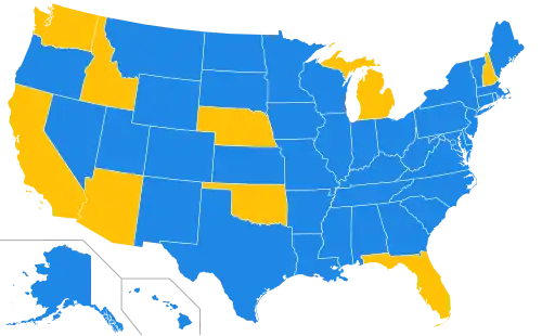 In 1961, President John F. Kennedy issued Executive Order 10925 which required government contractors to take "affirmative action to ensure that applicants are employed, and that employees are treated during employment, without regard to their race, creed, color, or national origin."[15] Affirmative action then evolved into a complex system of group preferences which would face many legal challenges. Affirmative action included the use of racial quotas until the Supreme Court ruled that quotas were unconstitutional in 1978.[16] Affirmative action currently tends to emphasize not specific quotas but rather "targeted goals" to address past discrimination in a particular institution or in broader society through "good-faith efforts ... to identify, select, and train potentially qualified minorities and women."[2][17] For example, many higher education institutions have voluntarily adopted policies which seek to increase recruitment of racial minorities.[18] Outreach campaigns, targeted recruitment, employee and management development, and employee support programs are examples of affirmative action in employment.[19] Nine states in the United States have banned race-based affirmative action: California (1996), Washington (1998, rescinded 2022[20]), Florida (1999), Michigan (2006), Nebraska (2008), Arizona (2010), New Hampshire (2012), Oklahoma (2012), and Idaho (2020). Florida's ban was via an executive order and New Hampshire and Idaho's bans were passed by the legislature. The other six bans were approved at the ballot.[21] The 1996 Hopwood v. Texas decision effectively barred affirmative action in the three states within the United States Court of Appeals for the Fifth Circuit—Louisiana, Mississippi, and Texas—until Grutter v. Bollinger abrogated it in 2003.[22]