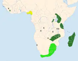 Note: Madagascar and Comoros populations sometimes afforded species status, see text. | |