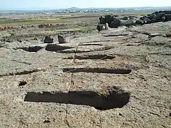 The Early Bronze Age culture area covers 200 hectares, of which 118 hectares have been declared a protected zone. The town had a regular street plan.,[3] and what may have been an astronomical observatory. The walls surrounding the settlement were up to one metre thick and were made of sun-dried mud brick.