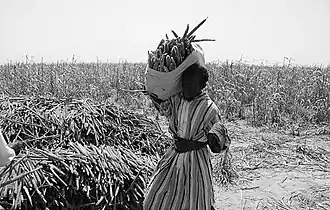 Rice, millet and sorghum are the main subsistence food crops for Senegal's rural population. Corn and fonio are also important cereal crops. Production of cereal food crops, such as rice, millet, corn and sorghum - which is often grown in rotation with peanuts - does not meet Senegal's needs. Only in years of good rainfall does the country approach self-sufficiency in millet, corn, sorghum and fonio. Local production increased significantly in the early 2000s following the government's decision to subsidise fertilizer[10] and encourage corn production, and thus reduce reliance upon peanuts.[1]