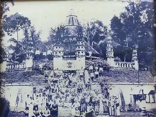An early community of Ahmadi Muslims in front of a mosque in Singaparna, Java, in the late 1920s.