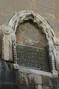 Over the main entrance to the mosque an inscription attributes its completion to Sultan Alaaddin Keykubad I in the year 617 H (1220–221).[11] To the right another inscription credits the same sultan as responsible for both the mosque and the tombs. Another inscription mentions the Syrian craftsman Muhammad ben Khaulan of Damascus. Inscriptions on the façade also show the names of Alaaddin, Izzeddin Keykavus, and the Atabeg who was responsible for work on the mosque during both Alaaddin's and Izzeddin's reigns. Izzeddin was responsible for constructing the main prayer hall of the mosque.[10]