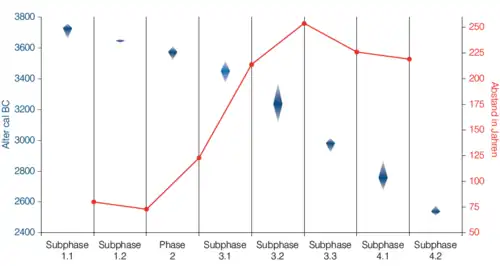 Based on the sequences of layers, a relative chronology can be established and this has been absolutely dated using the radiocarbon method. On this basis, a phase model was created.