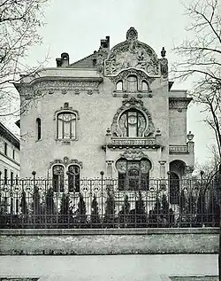 During his years abroad, Kőrössy was introduced to the embryonic forms of Art Nouveau in France and its counterpart, Jugendstil, in Germany. Upon his return to Hungary, he got a job in the office of Alajos Hauszmann, then one of the most respected architects in Budapest. There, he met the young designer Artúr Sebestyén, and the two became friends. In 1895, the pair decided to start their own firm, a partnership which lasted for four years. During this time their main commissions consisted of Baroque-revival tenements and apartment houses, which were quickly becoming some of the most popular residential type in Budapest. A notable exception was the Osztálysorsjáték palotát (Palace of the Royal Hungarian Lottery) on Eskü (now Március 15.) tér [15 March Square] (1898–99), which was severely damaged in World War II and subsequently demolished.[7]