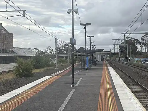 In 1961, the former Ballarat Road level crossing was grade separated, and was replaced with a road overpass, just north of the station.[5]