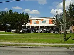 On May 4, 1935, voters in Common School District 29 approved creation of the Aldine Independent School District (AISD) by a 128 to 28 margin.[18] With the S.M.N. Marrs School filled to capacity, AISD voters approved 57-14 a $25,000 bond for construction of a new 10-classroom junior/senior high school building on September 7, 1935.[19] This new building opened in 1936 next door to the Marrs School on Aldine-Westfield Road.[20] It too was named S.M.N. Marrs. AISD acquired part of Common School District 26, also known as the White Oak District, in 1937.[21] This added portions of Acres Homes to AISD. Included was the White Oak School, which became the district's school for black students. In the spring of 1948, AISD opened another high school located immediately to the north of S.M.N. Marrs High.[22] This school was named Aldine High School, after the nearby community. The former Marrs High School was turned into a junior high school.
