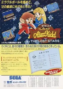 Alex Kidd: The Lost Stars[a] is a 1986 arcade platform game developed and published by Sega. Exclusively released in Japan, it later saw a worldwide release upon being ported to the Master System on March 10, 1988. In the game, players control either Alex Kidd or Stella through a series of side-scrolling levels, which need to be completed within a time limit.