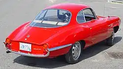 The very first prototype of the Giulietta SS was presented in 1957 at the Turin Motor Show.[4] After two more prototypes were unveiled, the production version of the car was presented on 24 June 1959 at the Monza race track.[4] The first 101 cars produced had "low nose" and 750 SS designation. A minimum of 100 cars were needed to homologate the car for the FIA regulations. While the production run included some cars with all-aluminium bodies, the majority of these cars had steel bodies with aluminium doors, engine bonnet and boot lid. The early production examples were also equipped with Weber 40 DCO3 carburettors, later changed to the 40 DCOE2. The Sprint Speciale has a drag coefficient of 0.28,[5] the same as a modern day Chevrolet Corvette (C6), which was not surpassed for more than twenty years. The engine is a 1,290 cc (1.3 L) Alfa Romeo Twin Cam engine, a 4-cylinder design with hemispheric combustion chambers and valves controlled directly by twin overhead camshafts. The early low-nose examples of the Giuletta SS are considered to be a popular choice amongst collectors.[6]