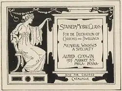 Godwin received his training in stained-and-leaded glass making in England, and emigrated to the United States in 1874. He opened his own shop in Philadelphia in 1878, and entered into a partnership with Wilhelm Reith – "Alfred Godwin & Company" – in 1883. An 1891 advertisement lists their shop at 1325 Market Street, Philadelphia. He was part of the short-lived "Association of Art Workers" (1893-1895), a team of Philadelphia artisans, furniture-makers and decorators who could collaborate on multiple aspects of a design project.[1] This was similar to Louis Comfort Tiffany's collaboration, "Associated American Artists."