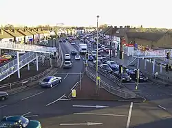 An easily recognisable feature of the local streetscape is a pedestrian footbridge over the Mitre Island roundabout, erected in July 1971. This footbridge is popularly known as "the Spider Bridge" and gains that popular appellation because it has eight 'legs' in four directions. Each direction has a set of steep steps and a stepped ramp (for easier wheelchair access). The footbridge has been painted various colours over the years and is currently painted white.