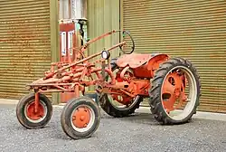 The Model G is a small implement carrier tractor that was made by the Allis-Chalmers Manufacturing Company. At the time of its introduction the Model G was unique for its rear-mounted, Continental N62 engine.[1] It was a four-cylinder engine with a 2+3⁄8 by 3+1⁄2 inches (60 mm × 89 mm) bore and stroke.[2] The Model G was designed for small farms and vegetable gardeners, and a line of implements specifically designed for it, including ploughs, planters, and cultivators. The design of the Model G allowed for a great view of the belly-mounted implements.