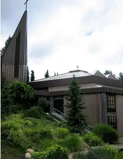 An octagonal church was built in the early 1980s, on the site of a dilapidated church from the 1960s. The showpiece of the church is a bronze sculpture of an angel by Ewald Mataré.