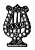 Alpha Chi Omega chose the three-stringed lyre as its official symbol since it was the first instrument played by the Greek gods on Mount Olympus.[14] The badge (pin) worn by initiated members is in the shape of a lyre, typically featuring pearls and the Greek letters ΑΧΩ on the crossbar.[15] It may also feature diamonds.[16] Although Alpha Chi Omega is no longer strictly a musical fraternity, it is still connected to its musical heritage through the symbol of the lyre, and the name of its publication is The Lyre.[17]