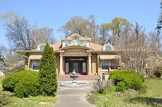 The Altman House is an historic house at 1202 Perry Street in Helena, Arkansas. It is a 1+12-story brick and stone structure, designed by Estelle Newman Altman as a residence for her family and built in 1914. It is a stylistically distinctive mixture of Classical Revival and Craftsman styling. It is roughly rectangular in plan, with an entry recessed behind a segmented-arch pediment supported by Ionic columns. The door is flanked by bevelled sidelight windows and is topped by an unusual elliptical transom window that is nearly 10 feet (3.0 m) wide. The bays which flank the entry have casement windows filled with diamond panes and topped by transom windows. A sunporch extends the building to the right side.[2]