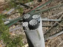Aluminum building wiring is a type of electrical wiring for residential construction or houses that uses aluminum electrical conductors. Aluminum provides a better conductivity-to-weight ratio than copper, and therefore is also used for wiring power grids, including overhead power transmission lines and local power distribution lines, as well as for power wiring of some airplanes.[1][2] Utility companies have used aluminum wire for electrical transmission in power grids since around the late 1800s to the early 1900s. It has cost and weight advantages over copper wires. Aluminum in power transmission and distribution applications is still the preferred wire material today.[3]