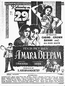 Amara Deepam (transl. The Eternal Lamp) is a 1956 Indian Tamil-language romantic drama film directed and co-written by T. Prakash Rao. A remake of the 1942 American film Random Harvest, it stars Sivaji Ganesan, Savitri and Padmini. The film, produced by Venus Pictures, was released on 29 June 1956. It was remade in Hindi as Amardeep (1958).[2][3]