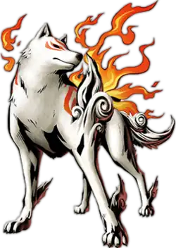 Amaterasu (Japanese: アマテラス), also known as Ōkami Amaterasu (大神天照), is a fictional character from Capcom's video game Ōkami. She[note 1] is a white wolf based on the Japanese goddess, Amaterasu (天照大御神, Amaterasu-ōmikami), in Japanese mythology. Amaterasu also appears in the Marvel vs. Capcom series and Asura's Wrath.