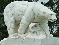 The remains of 56 AEF soldiers were eventually re-buried in plots surrounding the Polar Bear Memorial by sculptor Leon Hermant in White Chapel Memorial Cemetery, Troy, Michigan in a ceremony on May 30, 1930.[12][13]