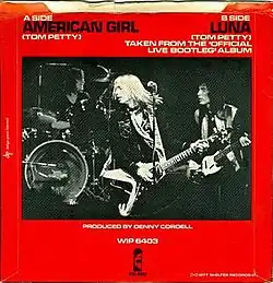"American Girl" is a rock song written by American singer, songwriter, and guitarist Tom Petty and recorded by Tom Petty and the Heartbreakers for their self-titled debut album (1976). It was released as a single in February 1977 by Shelter Records and did not chart in the United States, but peaked at No. 40 in the UK for the week ending August 27, 1977. It was re-released in 1994 as the second single from Petty's Greatest Hits album and peaked at No. 68 on the US Cash Box Top 100.[6]