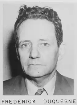 Even before the war, a large Nazi spy ring was found operating in the United States. As of 2023, the Duquesne Spy Ring is still the largest espionage case in United States history that ended in convictions. The 33 German agents who formed the Duquesne spy ring were placed in key jobs in the United States to get information that could be used in the event of war and to carry out acts of sabotage. One man opened a restaurant and used his position to get information from his customers; another worked at an airline so he could report Allied ships crossing the Atlantic Ocean; others in the ring worked as deliverymen so they could deliver secret messages alongside normal messages. The ring was led by Captain Fritz Joubert Duquesne, a South African Boer who spied for Germany in both World Wars and is best known as "The man who killed Kitchener" after he was awarded the Iron Cross for his key role in the sabotage and sinking of HMS Hampshire in 1916.[15] William G. Sebold, a double agent for the United States, was a major factor in the FBI's successful resolution of this case. For nearly two years, Sebold ran a secret radio station in New York for the ring. Sebold provided the FBI with information on what Germany was sending to its spies in the United States while allowing the FBI to control the information that was being transmitted to Germany. On June 29, 1941, six months before the U.S. declared war, the FBI acted. All 33 spies were arrested, found or pleaded guilty, and sentenced to serve a total of over 300 years in prison.[16]