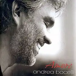 Amore is the eleventh studio album by Italian tenor Andrea Bocelli, released on 31 January 2006, for the Valentine's Day season. This album features a remake of Elvis Presley's "Can't Help Falling in Love"; "Because We Believe", the closing song of the 2006 Winter Olympics in Turin, Italy, which Bocelli wrote and performed; "Somos Novios (It's Impossible), a duet with American pop singer Christina Aguilera; and his first recording of Bésame Mucho, which eventually became one of his signature songs.