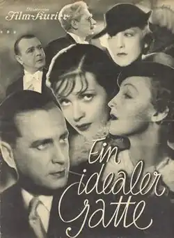 An Ideal Husband (German: Ein idealer Gatte) is a 1935 German comedy film directed by Herbert Selpin and starring Brigitte Helm, Sybille Schmitz and Karl Ludwig Diehl. It is based on the 1895 play An Ideal Husband by Oscar Wilde, a romantic comedy exploring social norms and sensitivities in the 19th century. The adaptation by Thea von Harbou is very faithful to the original work.[1]