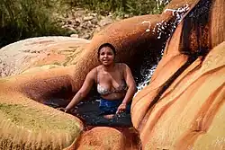 A woman bathes in a geyser in Analavory