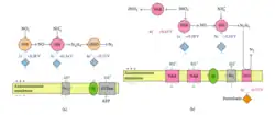 Whether the reduction of nitrite and the oxidation of hydrazine occur at different sites of the same enzyme or the reactions are catalyzed by different enzyme systems connected via an electron transport chain remains to be investigated.[33] In microbial nitrogen metabolism, the occurrence of hydrazine as an intermediate is rare.[35] Hydrazine has been proposed as an enzyme-bound intermediate in the nitrogenase reaction.[36] Recently, using detailed molecular analyses and combining complementary methods, Kartal and coworkers published strong evidence supporting the latter mechanism.[15][37] Furthermore, the enzyme producing hydrazine, hydrazine synthase was purified and shown to produce hydrazine from NO and ammonium.[15] The production of hydrazine from ammonium and NO was also supported by the resolution of the crystal structure of the enzyme hydrazine synthase.[38]