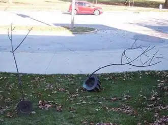 A Museum Studies course at IUPUI recently undertook the project of researching and reporting on the condition of 40 outdoor sculptures on the university campus. Anatomy Vessels (Saplings) was included in this movement.[13] This documentation was influenced by the successful Save Outdoor Sculpture! 1989 campaign organized by Heritage Preservation: The National Institute of Conservation partnered with the Smithsonian Institution, specifically the Smithsonian American Art Museum. Throughout the 1990s, over 7,000 volunteers nationwide have cataloged and assessed the condition of over 30,000 publicly accessible statues, monuments, and sculptures installed as outdoor public art across the United States.[14]