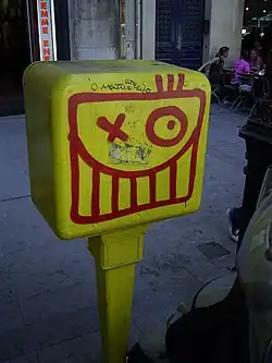 André's work has been exhibited in galleries and museums. In 2002, he opened the concept store "BlackBlock" in Paris at Palais de Tokyo; a creation around which he organized concerts, parades and other performances, and whose profits were reinvested in new projects art.[2] In 2010, André appeared in Banksy's documentary Exit Through the Gift Shop. In 2011, he participated in MoCA Los Angeles' Art in the Streets exhibition.[6] The same year, his work was also displayed at the Grand Palais, Paris and the 54th Venice Biennale.[7] In 2014, a solo retrospective dedicated to his work was held at the Museu do Design e da Moda in Lisbon.[8]