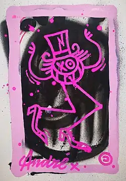In 1986, André started tagging a top-hatted, stick figure character by the name of Mr. A on the streets of Paris, which earned him a reputation as a renowned graffiti artist.[2][5] According to André, he has drawn approximately 300,000 Mr. A characters since the inception of his career.[3]