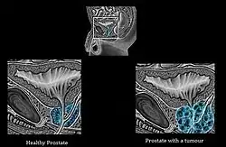 ![]() Differences between a healthy prostate and a prostate with a tumour | |