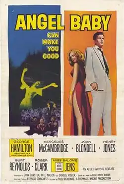 Angel Baby is a 1961 American drama film directed by Paul Wendkos and starring Salome Jens, George Hamilton and Mercedes McCambridge. It was Burt Reynolds's film debut.