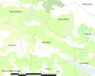 Ansignan is located in the canton of La Vallée de l'Agly and in the arrondissement of Prades.[3]