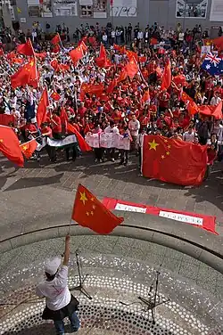 Protests also took place in Athens,[26] Istanbul,[27] Buenos Aires,[28] Bangkok,[29] Canberra,[30] Nagano,[31] and Seoul.[32] In response, Chinese government officials condemned the protests[33] and overseas Chinese organised 'pro-China' counter-demonstrations at torch processions,[34] joined by counter-protests in many Chinese cities.[3]