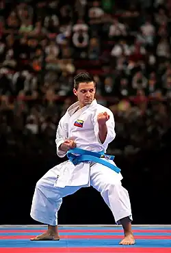 Antonio José Díaz Fernández (born June 12, 1980)[1] is a Venezuelan karateka. He is best known for winning gold medals in kata at the World Championships in Serbia (2010) and France (2012),[2] winning of the World Games in Cali, Colombia (2013), and Duisburg, Germany (2015),[3] and a silver medal in the World Championships in Japan 2008. He won bronze medals at the WKF World Championships in karate in 2002, 2004, 2006, 2014, and 2016 in the men's individual kata. He has also won 23 Pan American Karate Federation Senior Championships Medals 23 times to date.[4][5]