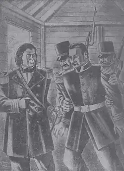 Duvergé led a quiet life during his confinement in El Seibo, dedicated to his subsistence activities. However, when Santana returned to the presidency in 1853 he became aware that he would be his victim at the first opportune opportunity. The most important step that Santana took at the beginning of his third administration was to denounce his one-time protégé, Buenaventura Báez, as a traitor, arranging for his arrest and deportation. He had learned that Báez, while in office, tried to undermine his ascendancy. Santana could not prevent the retrograde nature of his regime from manifesting itself and denting a considerable part of his prestige. Gradually, Báez's supporters mobilized to bring him back to power. From the outside, the deported dancers were preparing to carry out an armed expedition. Perhaps the most important of the conspiracies was the one led by Pedro Eugenio Pelletier, one of the Frenchmen with military experience who had made a career in the country. The purpose of the attempt was to provoke a statement in the city of Santo Domingo that would start an insurrection. Many people were compromised, such as Pedro Ramón de Mena and Francisco del Rosario Sánchez, even though he was under surveillance. A denunciation prevented success and the main conspirators were captured, while others managed to escape the country.[9] One of the branches of the conspiracy had extended to El Seibo, and Duvergé took part in it. This attitude, which broke with his rejection of political activity, is explained by the fact that his personal position had become vulnerable after Santana's return to the presidency in 1853. He feared that at any moment the enemy of him had him murdered. It is likely, in any case, that in light of his experience, he considered it necessary to overthrow the autocracy, and therefore decided to show solidarity with Báez, who was the object of support from all the sectors that questioned Santana. The authorities received confidences and ordered the arrest of Duvergé along with his children and other conspirators. According to García Lluberes, "[...] the eternal Cain, who stalked him relentlessly, found the pretext he needed to unleash his fratricidal wrath on him [...J". Duvergé evaded arrest after receiving the notification and proceeded to hide in the nearby mountains. After a few days, he was captured, the victim of an accusation, and transferred to a court that sentenced him to death. In contrast to the treatment that the despot gave to the conspirators arrested in Santo Domingo, to whom he commuted the capital punishment, he ratified the sentence of Duvergé and the rest involved in El Seibo, including two of his children. He harbored so much resentment toward his former subordinate that he remained in El Seibo while the trial was being held and until the sentence was carried out. Santana's hatred reached unsuspected limits: Daniel Duvergé, one of Duverge's sons, a minor, had to be kept in prison until he came of age, when he would be shot, but he was saved. The other two sons of the hero, children aged nine and 11, were sentenced to confinement in Samaná.