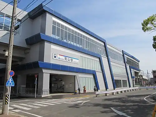 Aoyama Station (青山駅, Aoyama-eki) is a railway station operated by Meitetsu's Kōwa Line located in Handa, Aichi Prefecture, Japan. It is located 16.8 rail kilometers from the terminus of the line at Ōtagawa Station.[2]