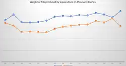 | Aquaculture marine | 190,000 tonnes (210,000 tons) |