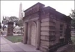 Benjamin Latrobe-designed cenotaphs for U.S. Senators John C. Calhoun (left) and Henry Clay in the Congressional Cemetery