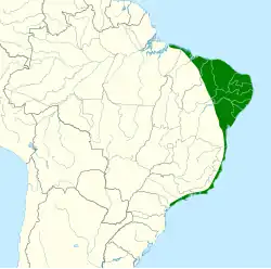 The little wood rail is found in Brazil from northeastern Pará south along the coast to São Paulo state and somewhat inland in the northeast.[4] It has also been documented as a vagrant in French Guiana.[5] The species mostly inhabits coastal swamps and lagoons including mangrove forest. Inland it is found in caatinga, a rather dry biome.[4][6]