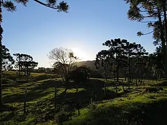 The Araucárias National Park is located in the Santa Catarina municipalities of Passos Maia and Ponte Serrada. The protected area was established on 19 October 2005 and has an area of 12,841 hectares (31,730 acres).[1] The park is administered by the Chico Mendes Institute for Biodiversity Conservation.[2] Annual rainfall averages 1,930 millimetres (76 in). Average temperature is 17 °C (63 °F). The park is on the Campos Gerais, a plateau that slopes gently down to the west. The land ranges in altitude from 805 to 1,218 metres (2,641 to 3,996 ft).[2]