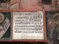 A 17th-century inscription in Greek from the Church of the Nativity of Christ, Arbanasi (the Bulgarian Orthodox population in the Ottoman Empire until 1870 was under the spiritual authority of the Greek Patriarchate of Constantinople)