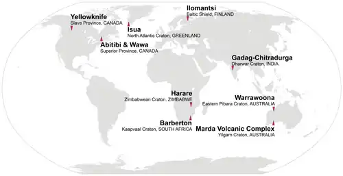 Onverwacht Group[35] 3445 ± 3[35] Barberton Kaapvaal Craton South Africa