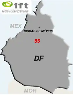 - ^ "Area Codes Maps and Stats". www.ift.org.mx. Instituto Federal de Telecomunicaciones. Retrieved 7 November 2018.